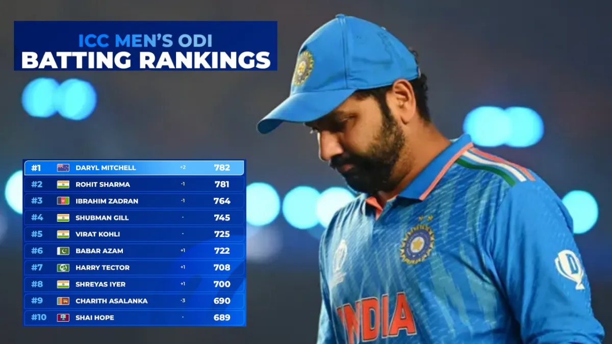 ICC ODI Rankings: भारतीय क्रिकेट टीम के ‘हिटमैन’ रोहित शर्मा का वनडे बल्लेबाजी रैंकिंग में नंबर-1 का सफर महज कुछ दिनों का ही रहा। ऑस्ट्रेलिया दौरे पर शानदार प्रदर्शन के दम पर वे शीर्ष पर पहुंचे थे, लेकिन अब न्यूजीलैंड के धुआंधार बल्लेबाज डेरिल मिचेल ने उन्हें पीछे छोड़ दिया है।