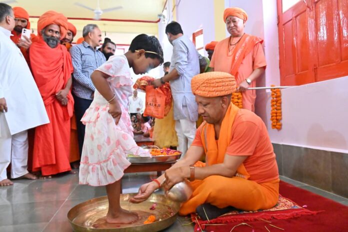 शारदीय नवरात्र की महानवमी को नौ दुर्गा स्वरूपा कुंवारी कन्याओं का पूजन किया गोरक्षपीठाधीश्वर ने