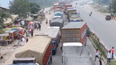 इससे पहले एनएच-19 पर 40 किलोमीटर लंबा जाम लग गया था। भीषण जाम का आलम यह है कि 24 घंटे में गाड़ियां मात्र पांच किलोमीटर रास्ता तय कर पा रही हैं। भीषण जाम में हजारों गाड़ियां फंसी हैं और दूर-दूर तक ट्रक ही ट्रक खड़े दिखाई दे रहे हैं।